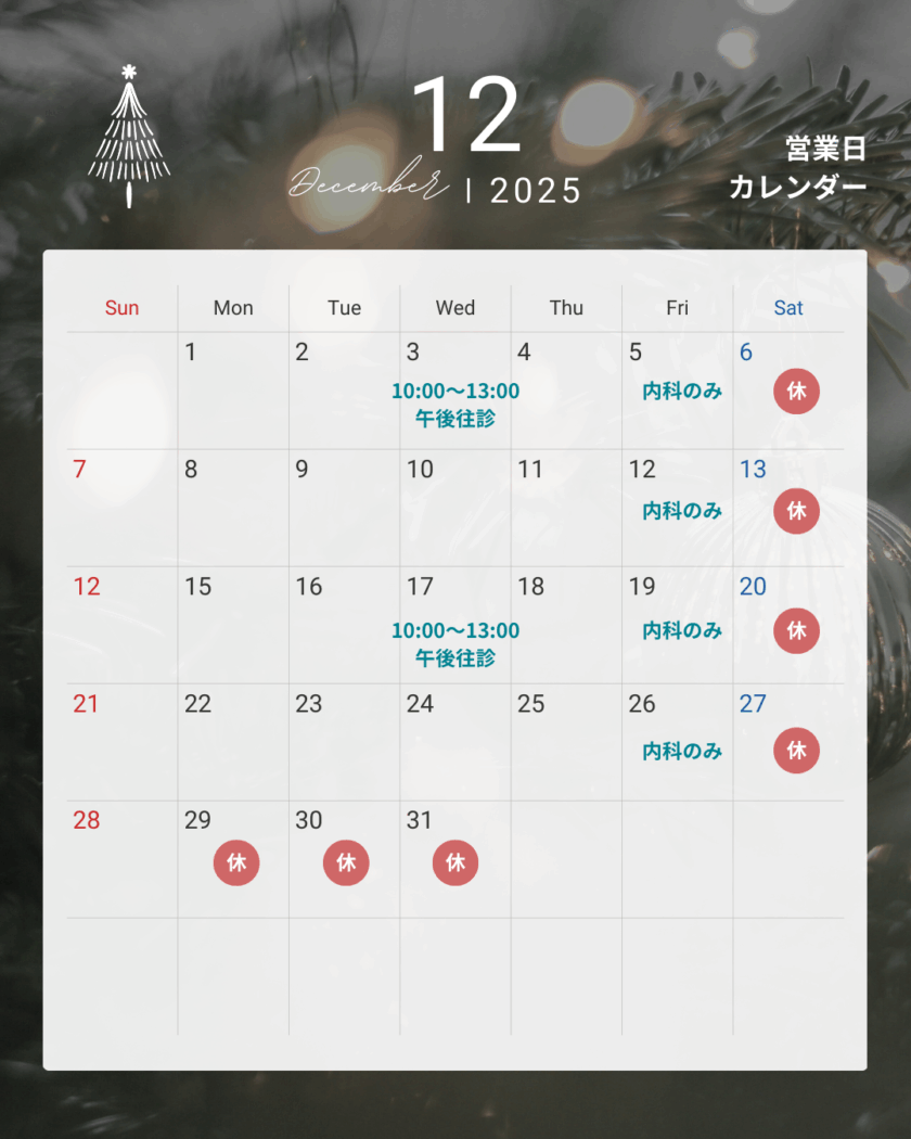 また、年末は12月28日までの診療となりますので、お間違いのないようお願いいたします🙇‍♀️