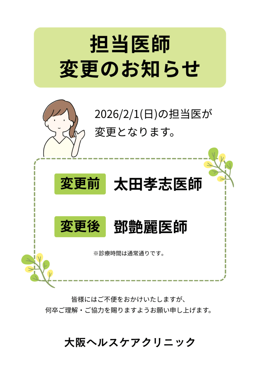 2/1(日)診療の担当医変更のお知らせ