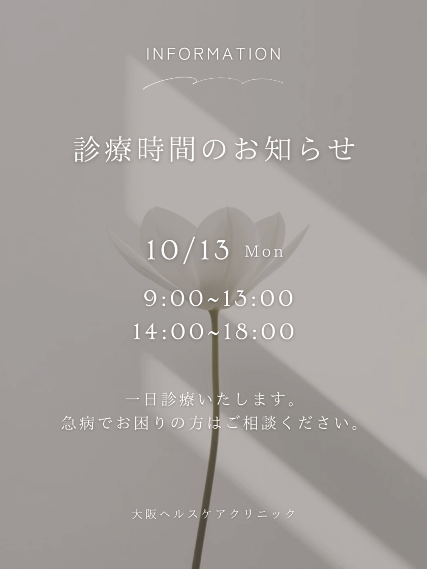 10月13日(月・祝)の診療時間についてお知らせ